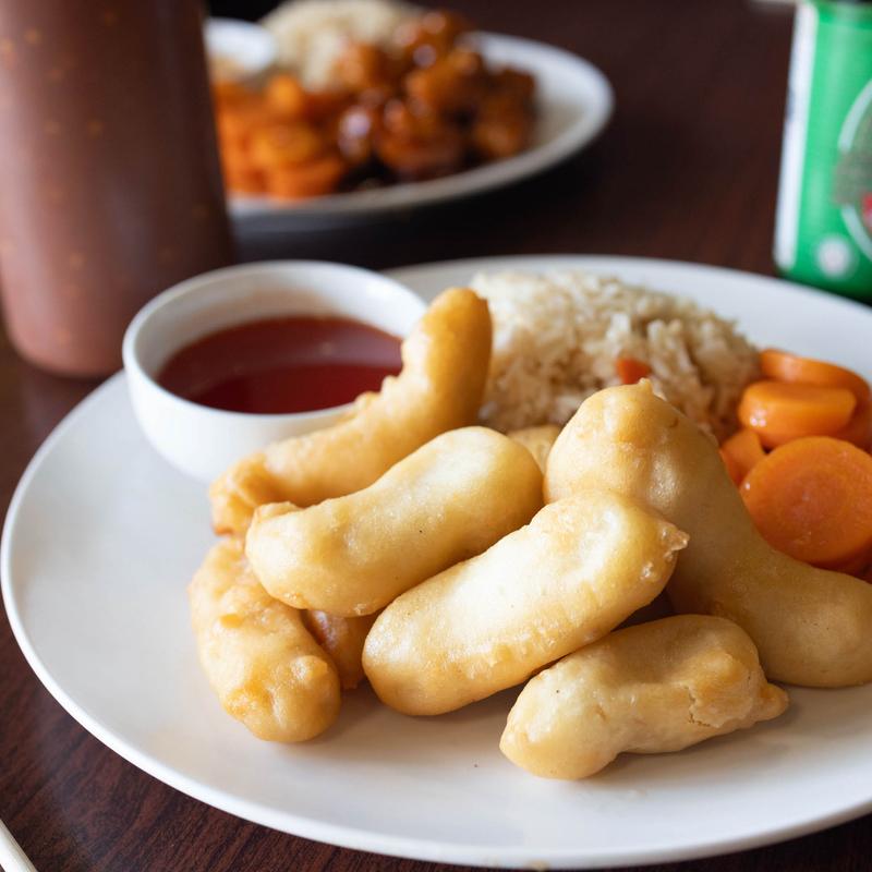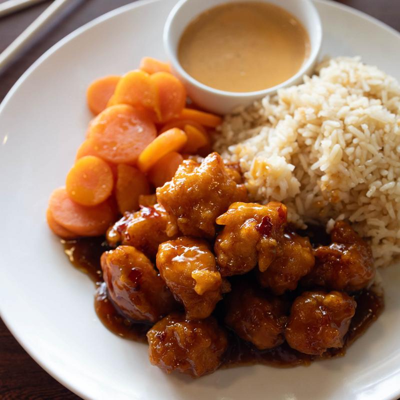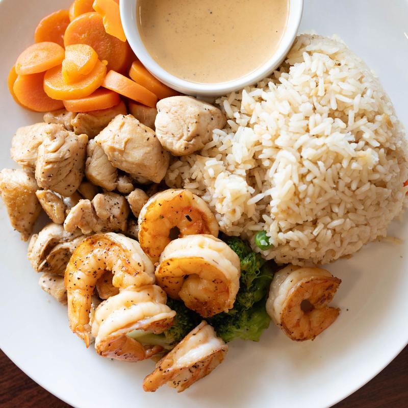 Includes: fried rice, sweet carrots, and shrimp sauce