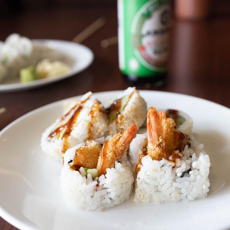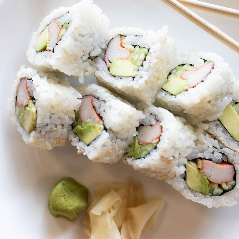Soybean wrap with sushi rice, shrimp, crab meat & avocado
